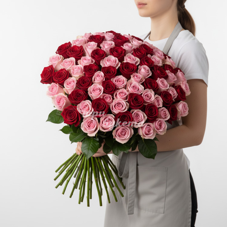 • Красные и розовые розы, 101 шт.