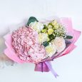 Белый букет пионовидных роз с гортензией