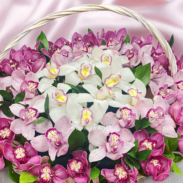 Большая корзина с орхидеями и рускусом