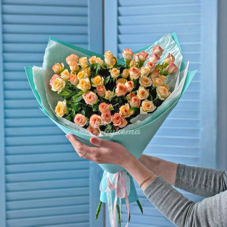 Букет цветных Кенийских кустовых роз