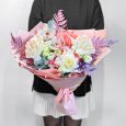 Букет из гортензий и персиковых диантусов