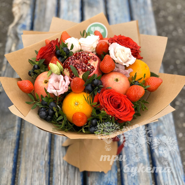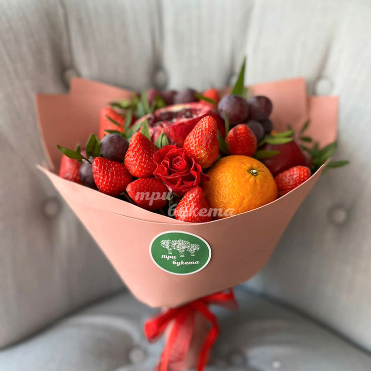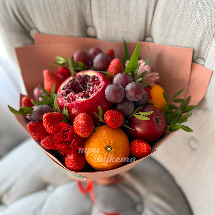 Букет из клубники, граната и роз