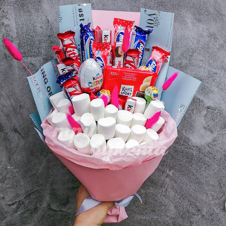 Букет из конфет и маршмеллоу