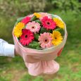Букет красных гербер и розовых маттиол
