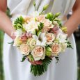 Букет невесты из маттиол и эустом