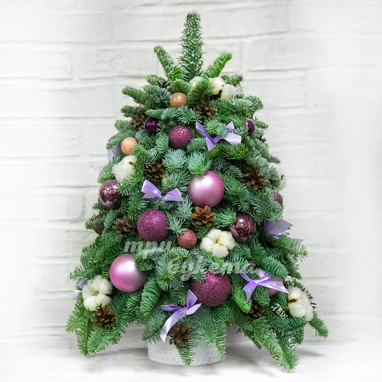 Елка из нобилиса с хлопком и шарами