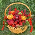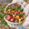 Фрукты и сухофрукты в корзине для мамы