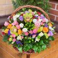 Голубые и розовые гипсофилы в корзине
