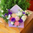 Композиция гербер и эстом в коробке