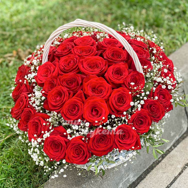 Композиция из 45 роз в виде сердца