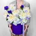 Коробка белых эустом и розовых гортензий