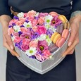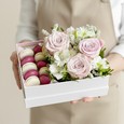 Коробка из 6 макарун, хризантем и роз