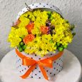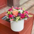 Коробка с хризантемами и персиковыми герберами