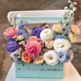 Коробка-сердце с хризантемами и розами