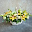 Корзина красных роз с эвкалиптом