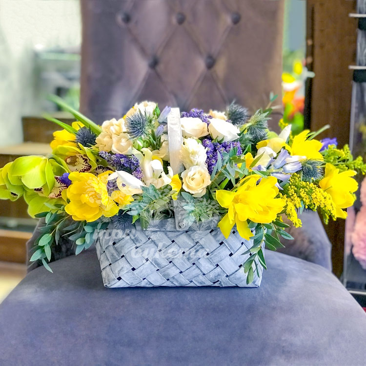 Корзина кустовых роз и ирисов