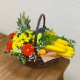 Корзина с фруктами, чаем и орешками