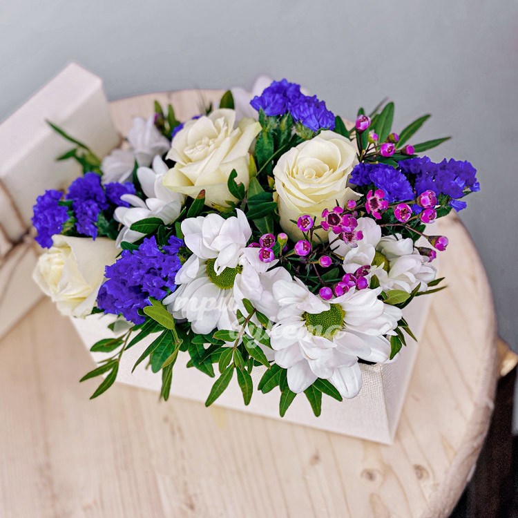 Маленькая коробка хризантем и роз