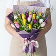 Мини-букет из розовой розы в пленке