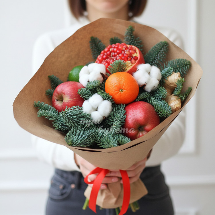 Новогодний букет из граната и яблок