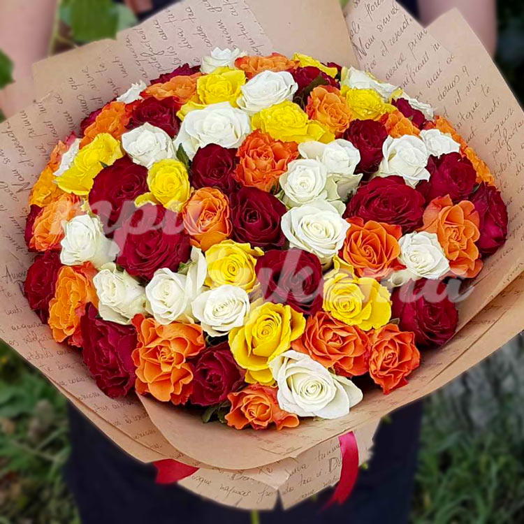 Разноцветный букет из роз