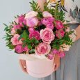 Розовая роза и гвоздики в коробке