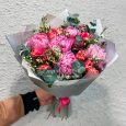 Розовые гвоздики и белые розы