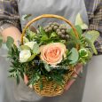 Яркая корзина гвоздик, роз и маттиол